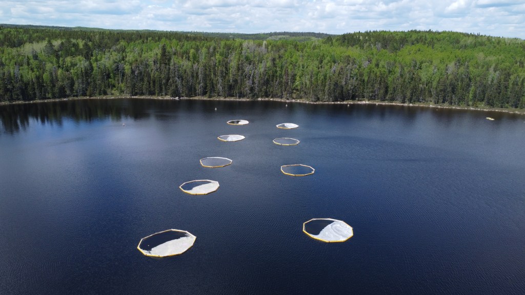 Pelagic limnocorrals were used in 2021 and 2022 to assess the fate and effects of microplastics in freshwater lakes. These experiments were conducted at the IISD-Experimental Lakes Area in northwestern Ontario. These limnocorrals simulate the pelagic (think deep open water) area of a lake. We wanted to learn about the fate of microplastics and their additive chemicals, how microplastics impact water quality, and how microplastics affect the different types of organisms that live in pelagic zones of freshwater lakes (e.g., zooplankton, algae, fish). The pelagic limnocorrals we deployed were 10 m in diameter and 2 m deep and completely contained within the water column (i.e., not open to the sediment).