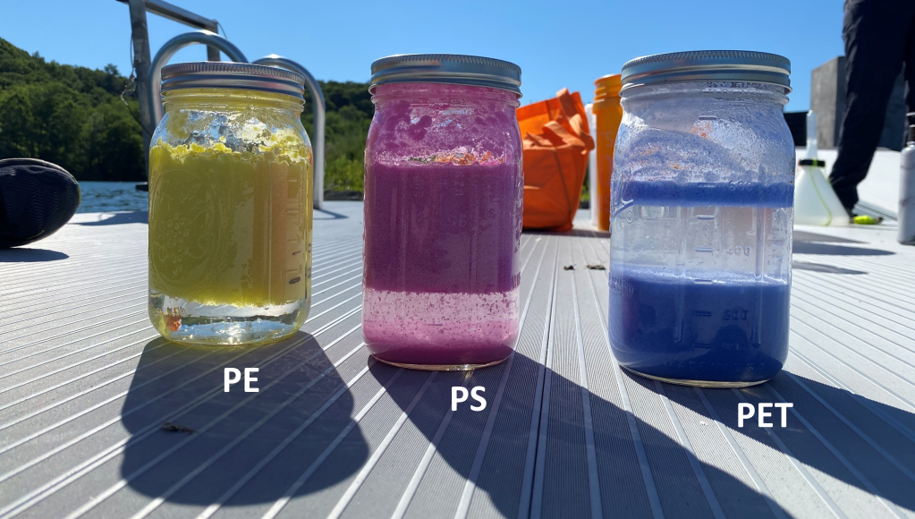This experiment used a regression design to assess the impacts of a range of environmentally relevant microplastic concentrations. A mixture of common plastic polymers (PE, PS, and PET) were added to limnocorrals that varied in colour and buoyancy to help trace where the plastics ended up. Our team monitored the water quality and the organisms (microbiota, periphyton, phytoplankton, zooplankton, fish) in the limnocorrals for 10 weeks.